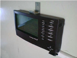 | 廊下に設置した気象表示端末→ |