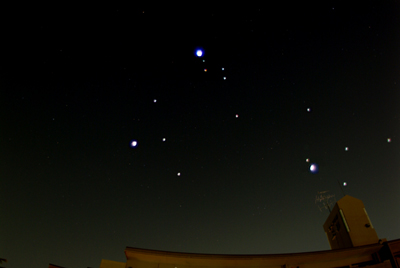 いちばん明るい星を3つ探して金色のシールをはり付けましょう。