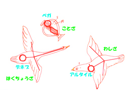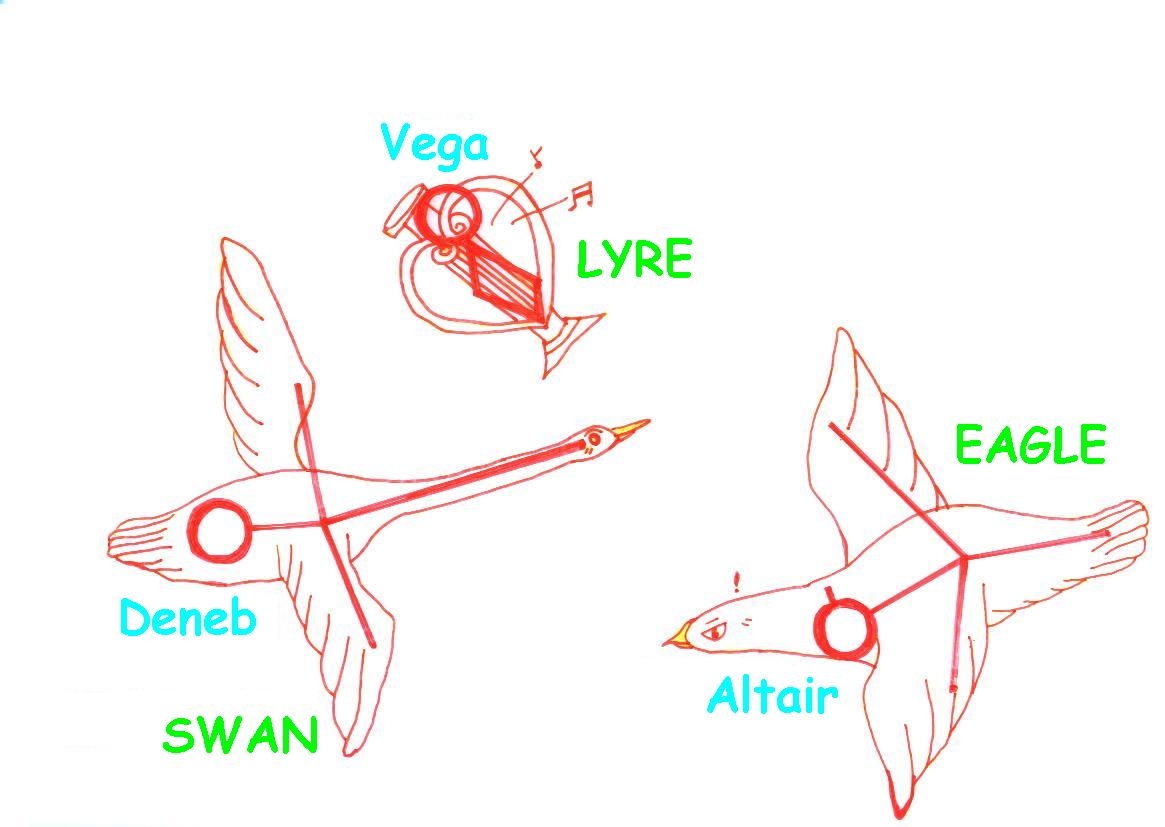 In addition, it is a useful means of introducing the name of the stars and constellations making up the summer triangle, by devising the cartoon characters.