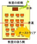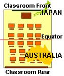 | 日本は北半球、オーストラリアは南半球にある。 | 教室を地球に見立ててみると、教室の前側が北半球・後ろ側が南半球ということになる。 |