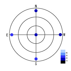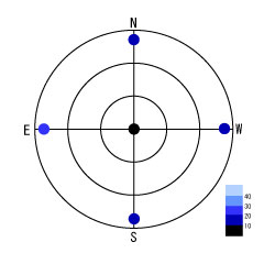 東西南北天頂の他に、一等星の方向の夜空の観測地を加えてプロットすれば、もっと詳しく全天の夜空の明るさを視覚的にとらえることができます。