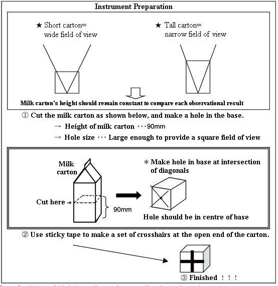 In this teaching aid, you will watch the night sky using an investigation instrument made from a milk carton, and count the number of stars which are visible inside its field of view.