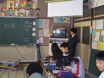 2002年11月29日、仙台市立幸町小学校で、日食の起こるしくみをPCカメラを用いた教材を使って学習しました。